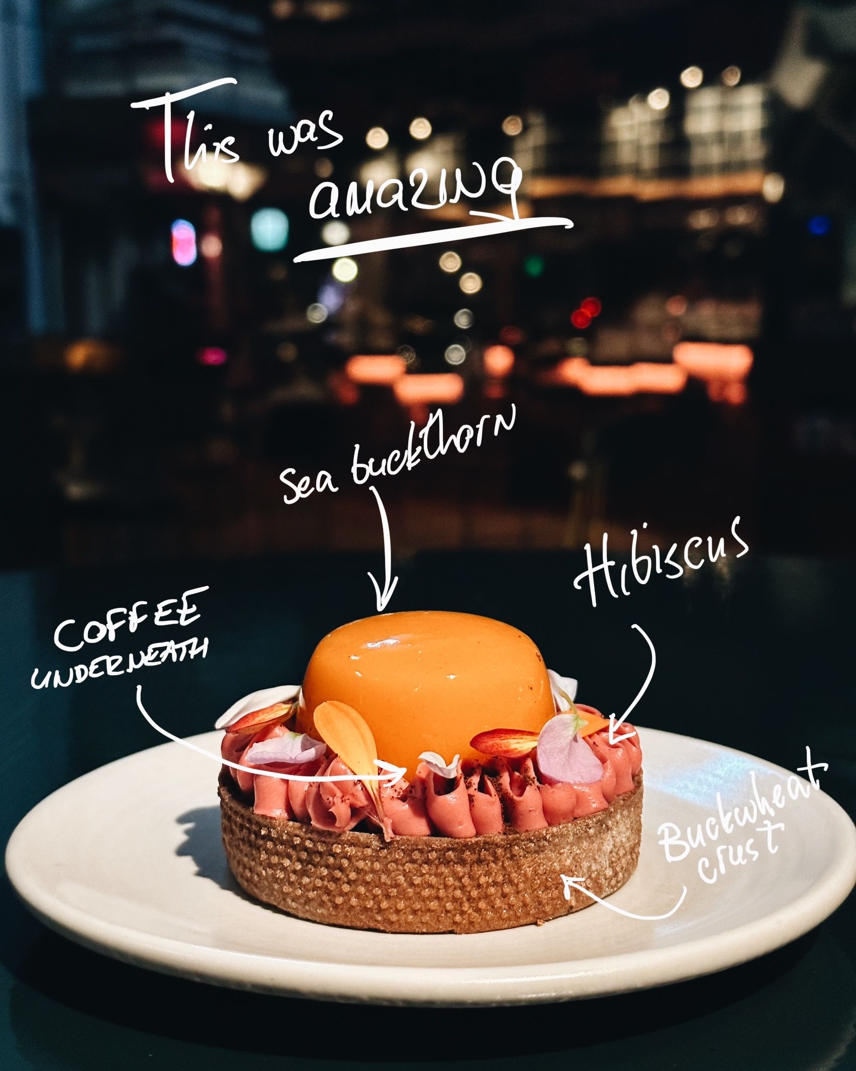 Aloha hosted Cheesy Wednesdays - days where the only thing on the dinner menu was a cheese fondue, and it was great. But what stole the show was this sea buckthorn tart: